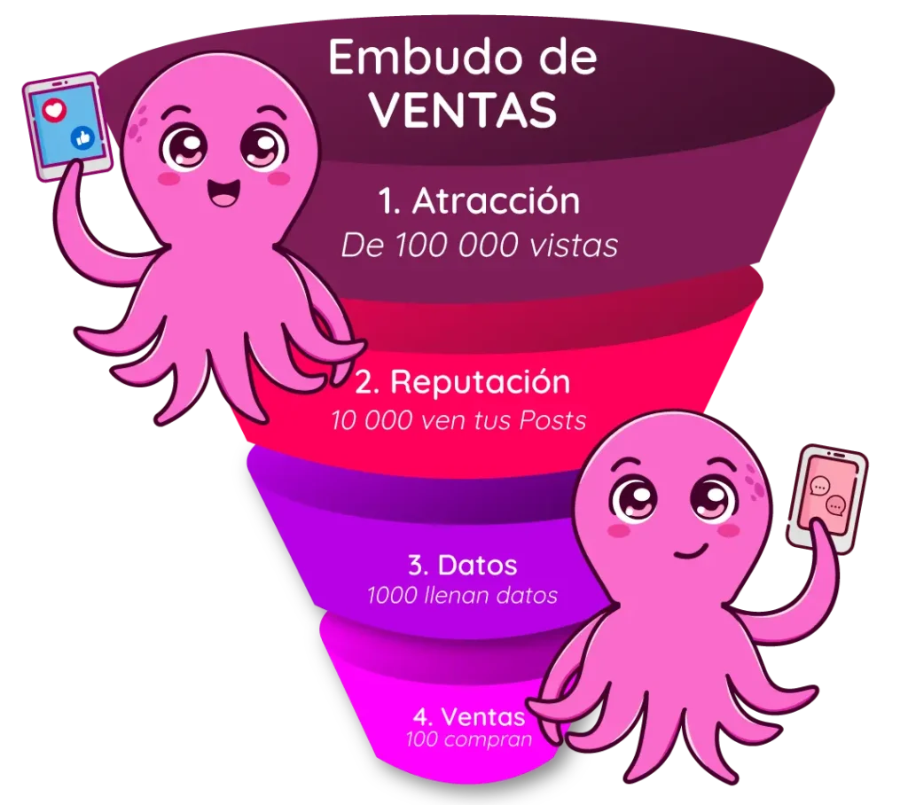 Nuestro embudo de 4 fases demuestra que sin el tratamiento correcto (mensajes clave), no existe cura (ventas):